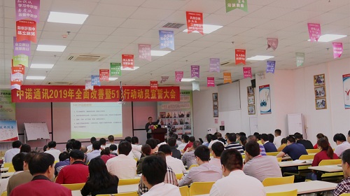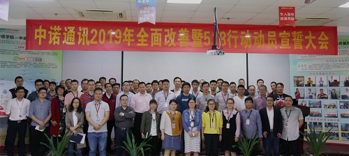 2019年4月4日,福日電子全資子公司深圳市中諾通訊有限公司2019年全面改善暨518行動(dòng)動(dòng)員誓師大會(huì)在中諾學(xué)院舉行,公司運(yùn)營平臺(tái)、各事業(yè)部代表約120人參會(huì)。
