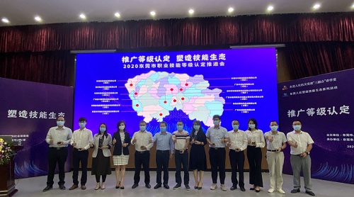 2020年10月27日,2020東莞市職業技能等級認定推進會在東莞市舉行,來自該市第二批共12家擬開展技能等級認定企業的相關人員進行集中培訓學習,為更好地推廣等級認定、塑造技能生態夯實基礎。福日電子二級控股子公司廣東以諾通訊有限公司技師工作站相關負責人受邀參加。