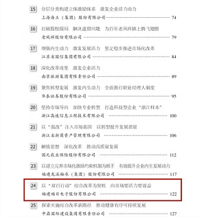 國資委改革辦有關負責人介紹,為進一步發(fā)揮國企改革“雙百行動”的示范引領作用,《改革樣本:國企改革“雙百行動”案例集》共收錄了148家“雙百企業(yè)”鮮活改革實踐案例,展示了廣大“雙百企業(yè)”聚焦“五突破、一加強”的目標任務,在優(yōu)化法人治理結構、健全市場化經(jīng)營機制、積極穩(wěn)妥推進混合所有制改革等方面的典型經(jīng)驗和成效。