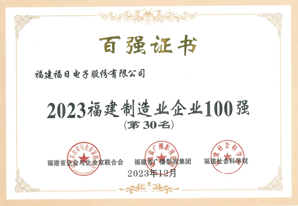 福日電子榮耀再續,連續五年入圍福建省制造企業100強