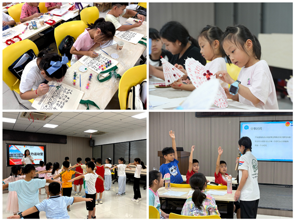 與往年相比,今年的托管班在課程與活動組織上不斷創(chuàng)新,設(shè)計更加多元,不僅保留了手工、繪畫、心理健康等傳統(tǒng)課程,還特別引入了非遺體驗環(huán)節(jié),“小候鳥”們在剪紙、皮影戲和艾草錘制作中感受傳統(tǒng)文化的魅力。安全教育也更具實效,來自消防與應急部門的沉浸式演練,讓大家在模擬場景中提升了防災避險的能力。外出活動同樣別具特色,孩子們走進大朗鎮(zhèn)禁毒教育基地,借助VR體驗和互動問答深刻認識到“珍愛生命,遠離毒品”的重要意義。在寓教于樂的過程中,通過主題參觀、團隊活動和互動教學,小朋友們不僅增長了知識,開闊了眼界,更在心中播下了責任與擔當?shù)姆N子。
